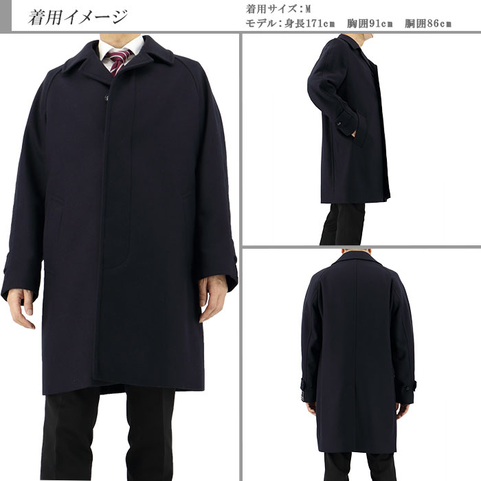 【10%OFF】 ステンカラーコート ラグランスリーブ メンズ ビジネスコート ミドル丈 秋冬 紺 ネイビ